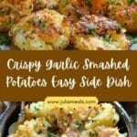 Crispy Garlic Smashed Potatoes are golden and crunchy on the outside, soft on the inside, and packed with garlicky herb flavor. This easy side dish is perfect for pairing with any meal — no fancy tools required.
