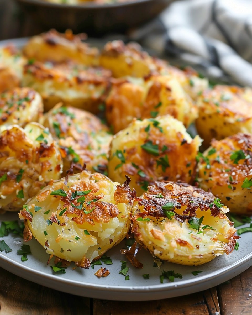 Make sure potatoes are dry before smashing to help them crisp up better.,Don’t overcrowd the pan — spacing them out allows for maximum crispiness.,Add cheese during the last 5 minutes of roasting to avoid burning.