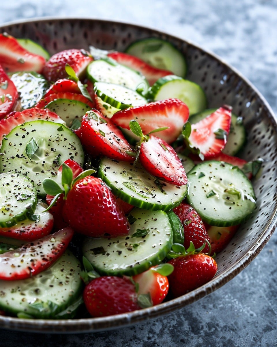 Cucumber Strawberry Salad is a light, refreshing dish that combines crisp cucumbers and juicy strawberries with a touch of fresh mint and a simple lemon-honey dressing. It’s perfect for warm days and makes a colorful side or snack.