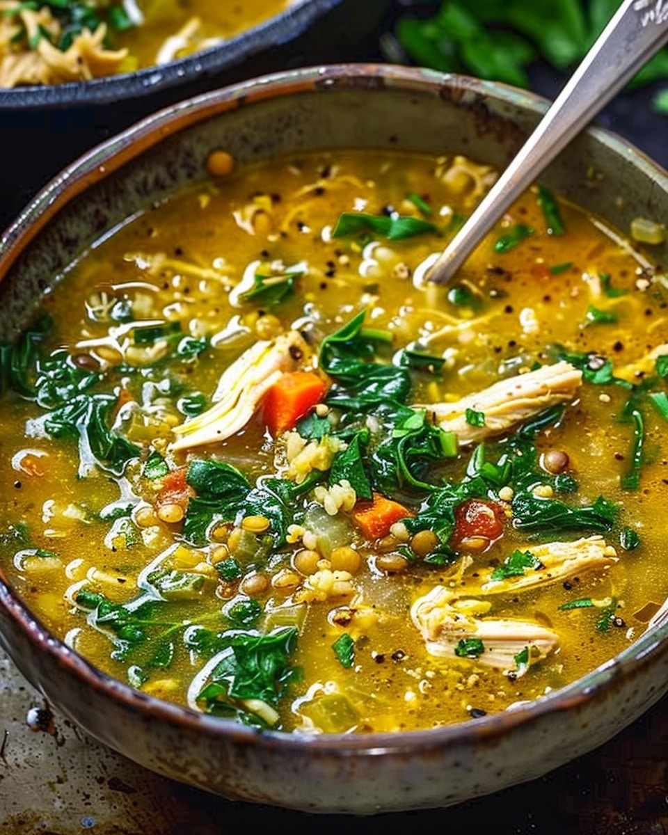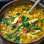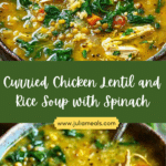 Curried Chicken Lentil and Rice Soup with Spinach is a hearty, nourishing soup packed with protein-rich lentils, shredded chicken, rice, and warm curry spices. This comforting one-pot meal is loaded with flavor, easy to prepare, and perfect for cozy nights or healthy meal prep.