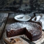 This cake does not use flour, which gives it a dense, fudgy texture and allows the chocolate flavor to stand out.