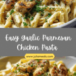 Garlic Parmesan chicken pasta is a creamy, flavorful dinner made with juicy chicken, tender pasta, and a rich garlic-Parmesan sauce. Perfect for weeknights, this easy one-pan recipe comes together in under 30 minutes using simple ingredients — a comforting, crowd-pleasing favorite.