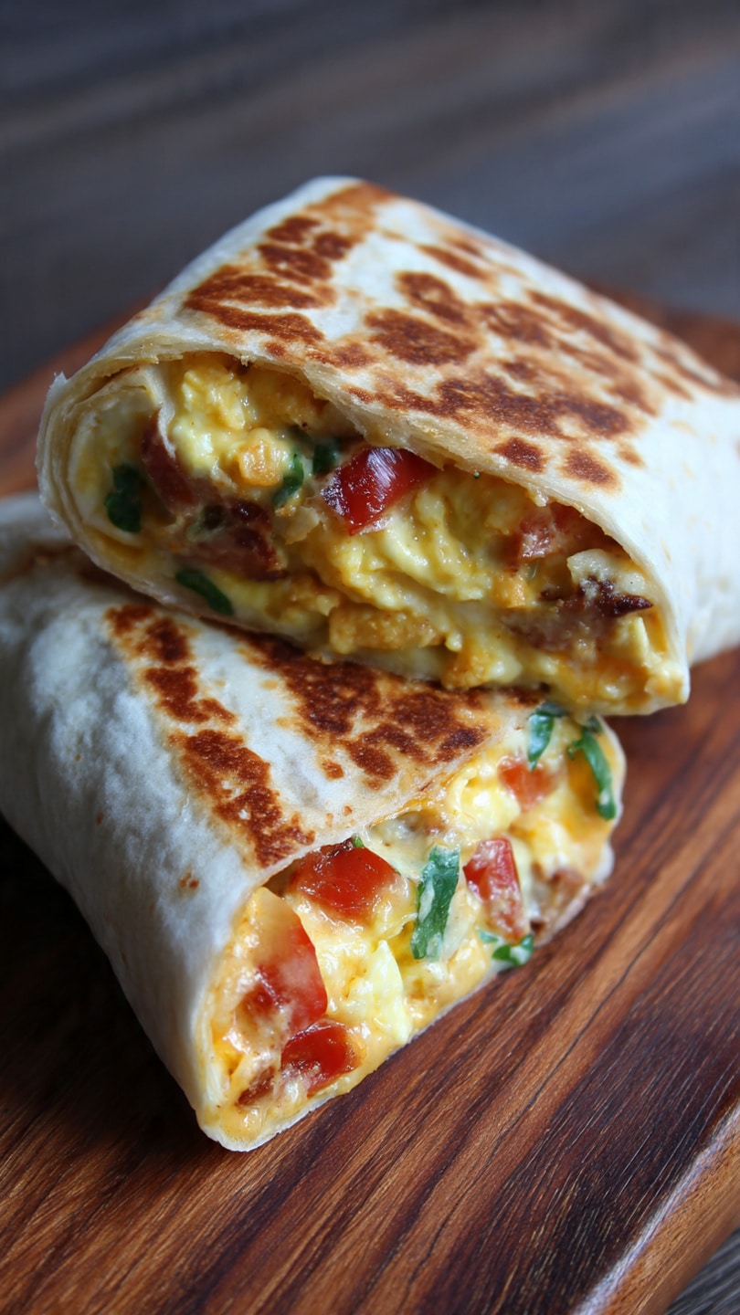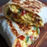 This recipe makes 4 burritos and takes about 30 minutes total—15 minutes to prep and 15 minutes to cook.