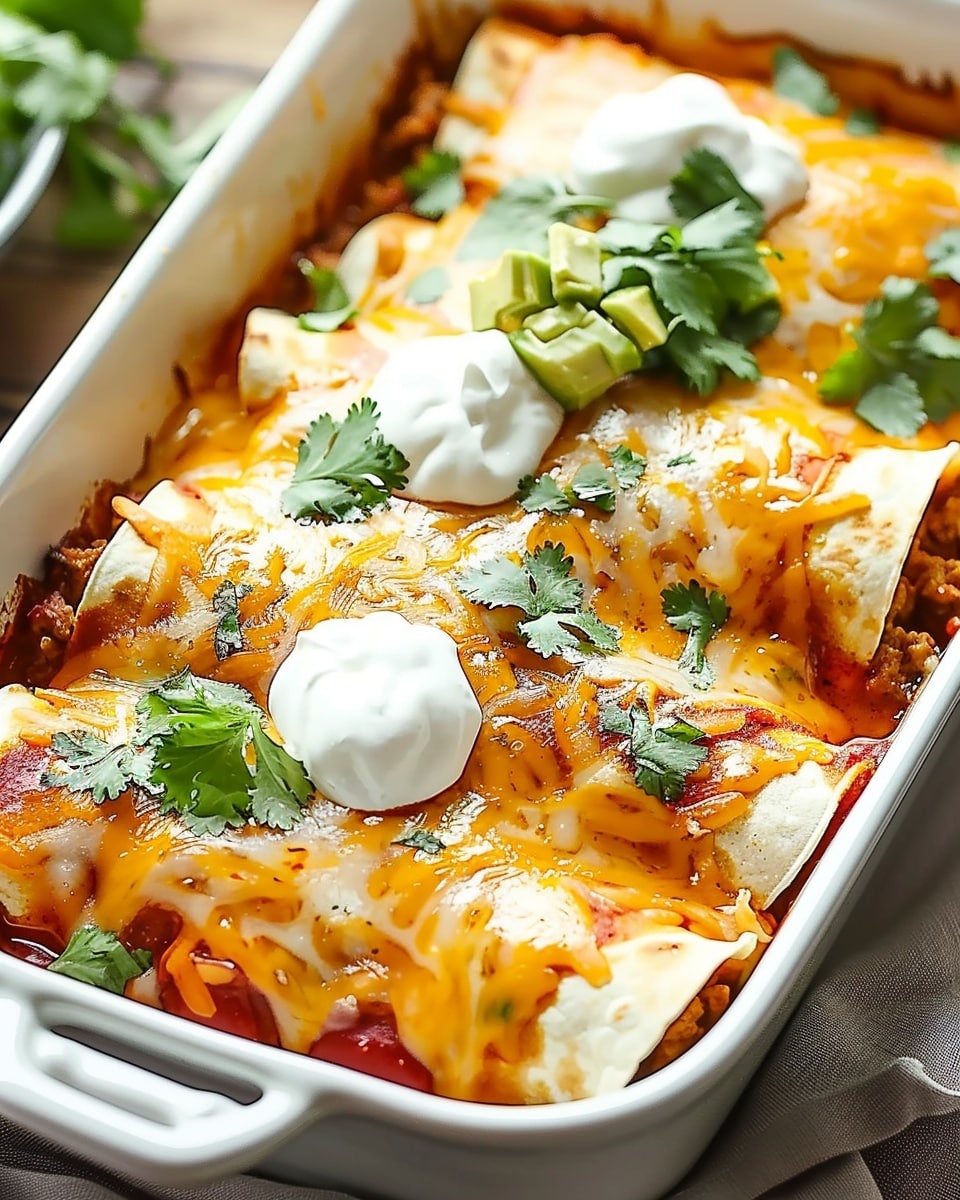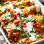 These Easy Ground Beef Enchiladas are a cheesy, comforting, Mexican-inspired dish featuring seasoned ground beef, melty cheese, and rich enchilada sauce. Baked until bubbly, they’re freezer-friendly and perfect for busy weeknights or feeding a crowd.