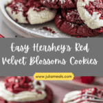 These Easy Hershey’s Red Velvet Blossoms Cookies are a fun and festive twist on a classic holiday cookie. They’re soft, chewy, and rich with cocoa flavor, all topped with a signature Hershey’s Kiss for that perfect finishing touch. Whether I’m baking for Valentine’s Day, Christmas, or just because, these cookies never last long in my kitchen.
