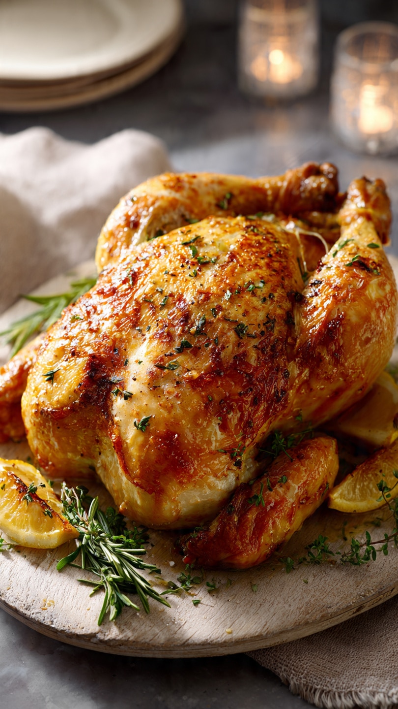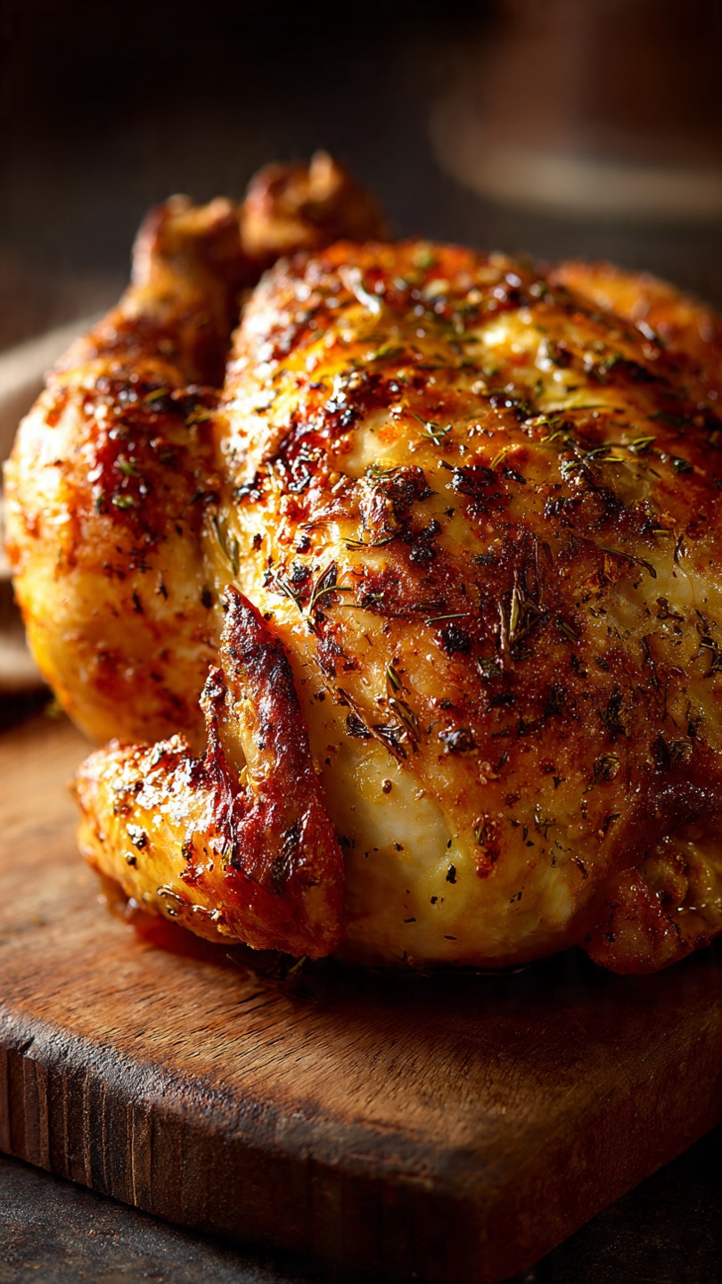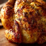 Sometimes I use butter instead of oil for a richer flavor or add smoked paprika or Italian seasoning for variety. I’ve also roasted the chicken on a bed of vegetables—like carrots, onions, and potatoes—which soak up the juices beautifully. For a citrus twist, I add orange or lime slices to the cavity.
