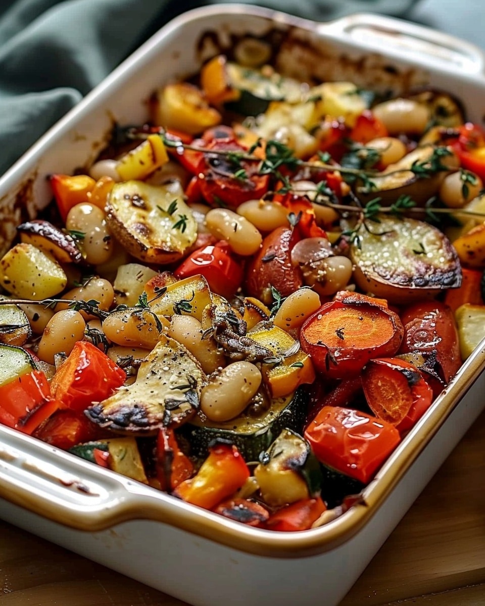 This Easy Roasted Vegetable and Cannellini Bean Bake is a wholesome, hearty dish perfect for busy weeknights. Packed with roasted veggies, creamy cannellini beans, and a touch of herbs and cheese, it’s comforting, filling, and incredibly easy to throw together.