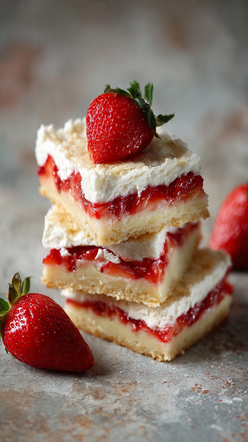 These easy strawberry shortcake bars combine a buttery crust, a tender shortcake center, and a sweet, juicy strawberry layer in a simple, sliceable dessert perfect for gatherings or everyday treats.