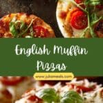 These English Muffin Pizzas are quick, fun, and customizable mini pizzas with crispy toasted English muffin halves topped with pizza sauce, gooey cheese, and your favorite toppings. They come together in under 20 minutes—perfect for busy weeknights, snacks, or casual meals.
