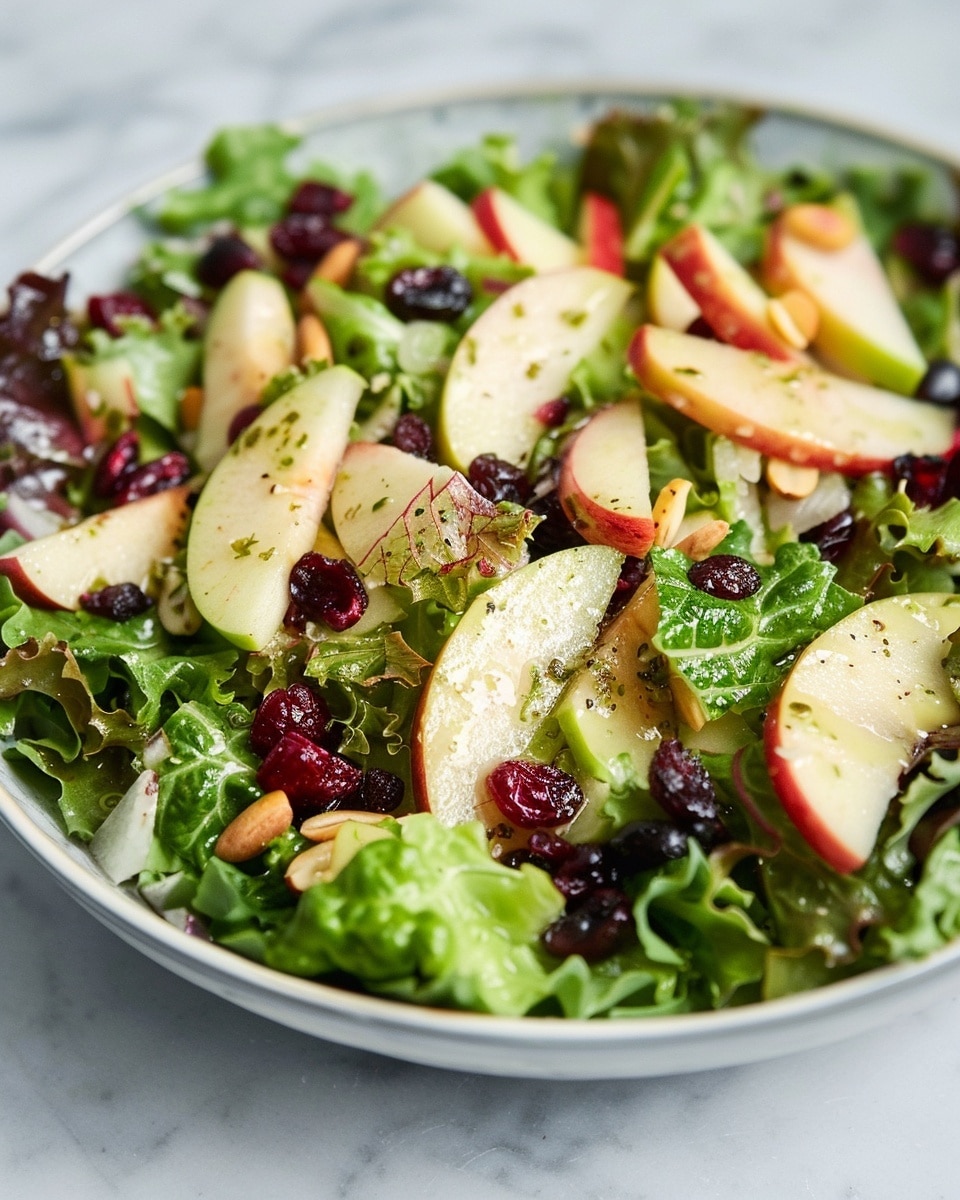 This Green Salad with Apples, Cranberries, and Pepitas is a fresh, vibrant side dish perfect for holidays or everyday meals. Tossed in a homemade apple cider vinaigrette and topped with creamy goat cheese, it’s a flavorful and colorful salad that’s both quick and impressive.