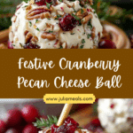 The Festive Cranberry Pecan Cheese Ball is a colorful, creamy appetizer packed with tangy cheese, dried cranberries, crunchy pecans, and fresh herbs. Perfect for the holidays, it’s easy to make ahead and always a crowd-pleaser.
