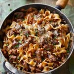 French onion beef and noodles is one of those comforting, easy meals that never disappoints. It’s full of bold flavor, comes together quickly, and feeds a hungry crowd. I love how it takes the classic taste of French onion soup and turns it into a filling pasta dinner I can enjoy any night of the week.
