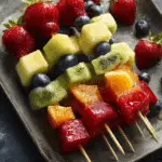 Fruit Skewers are a vibrant, easy, and healthy way to serve fresh fruit at parties, brunches, BBQs, or as a refreshing snack. These colorful fruit kabobs are kid-friendly, customizable, and perfect for any occasion—fun to eat and beautiful to display.
