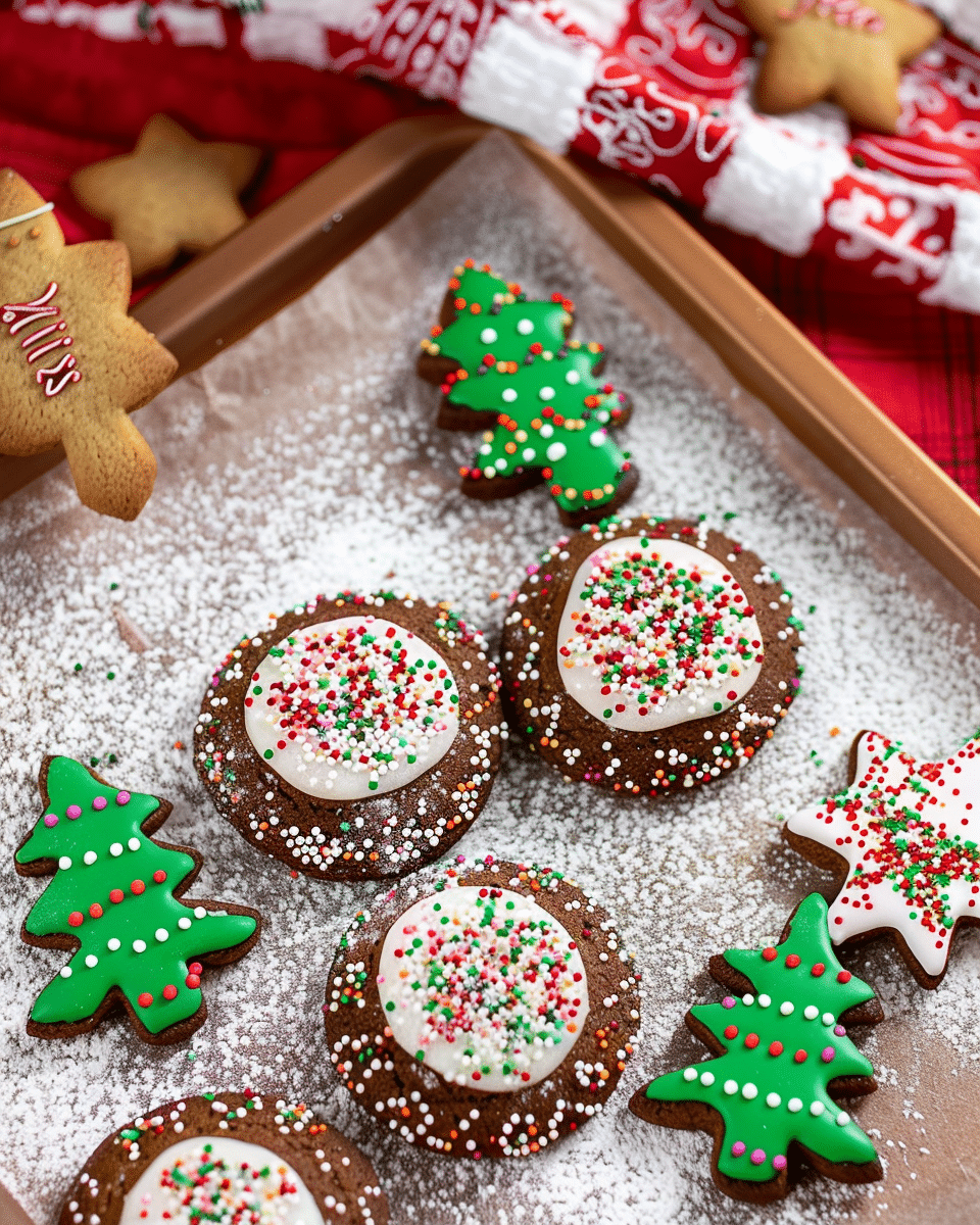 Gingerbread sprinkle “kiss” cookies are one of my favorite ways to combine warm holiday spices with playful decorations and a sweet chocolate center. They’re soft, festive, and perfect for sharing—or keeping all to myself. Whether I’m baking them for a party or just for fun, they always bring a little extra cheer to my cookie plate.