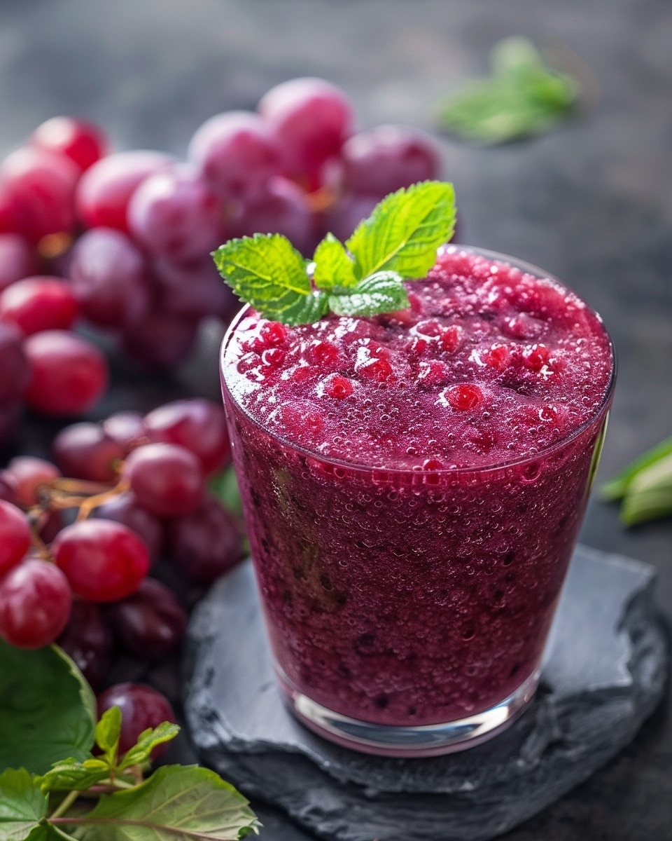 - Pour into a glass and serve immediately. Garnish with extra grapes or seeds if desired.