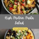 I like making this high protein pasta salad when I want something filling, nutritious, and still refreshing. It combines hearty pasta with protein-rich ingredients and crisp vegetables, creating a balanced dish that works perfectly for meals or meal prep.