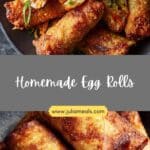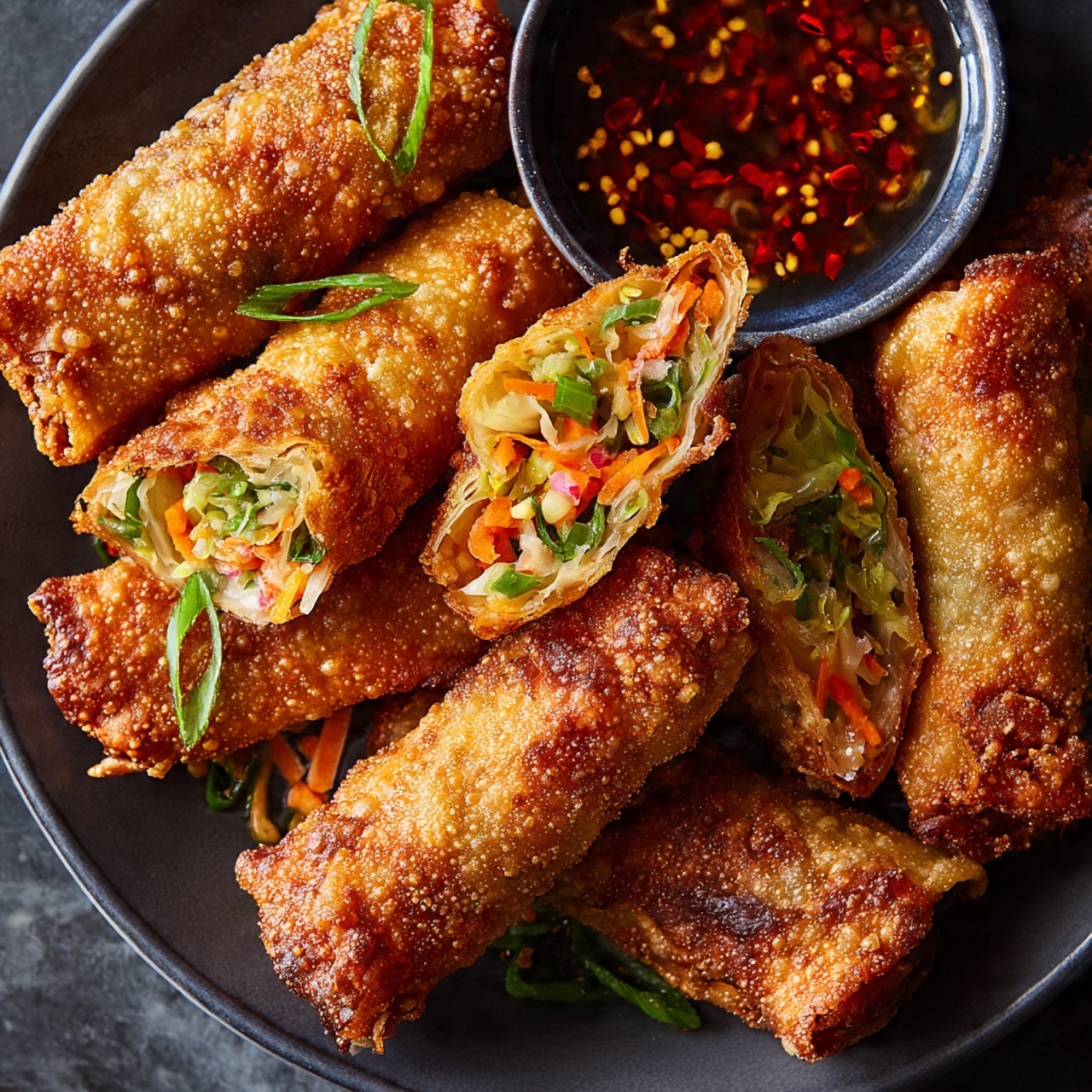 I store cooked egg rolls in an airtight container in the refrigerator for up to 3 days. To reheat, I place them in a 375°F (190°C) oven or air fryer until crispy again. I avoid microwaving because it softens the wrapper. I also freeze uncooked egg rolls for up to 2 months and cook them directly from frozen, adding a few extra minutes to the cooking time.