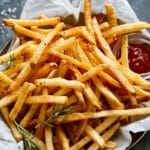 Fries are best fresh, but I store leftovers in the fridge for up to 2 days. To reheat, I use the oven or air fryer—this helps bring back the crisp. I avoid microwaving, which makes them soft.