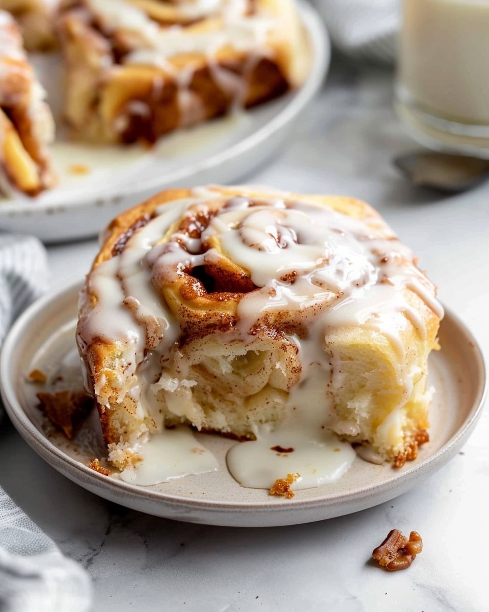 I store leftovers in an airtight container at room temperature for up to 2 days or in the fridge for 4–5 days. When reheating, I warm individual rolls in the microwave for 20–30 seconds. To reheat a whole pan, I cover it with foil and place it in a 300°F oven for about 10–15 minutes. I always add a bit of extra frosting on top before serving again.