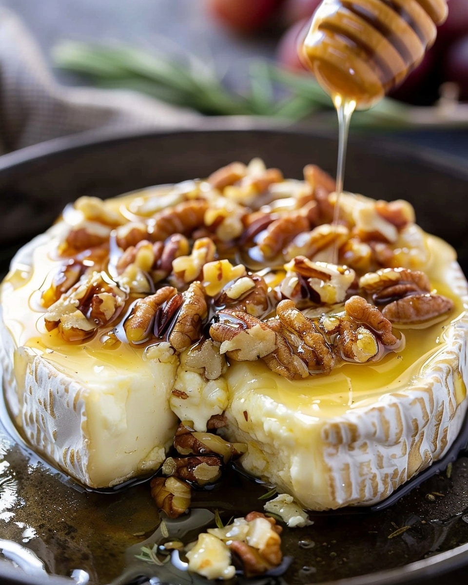 - Optional puff pastry version: Wrap the brie in a puff pastry sheet, seal edges, and bake for 20–25 minutes until golden. Drizzle honey and nuts on top after baking.