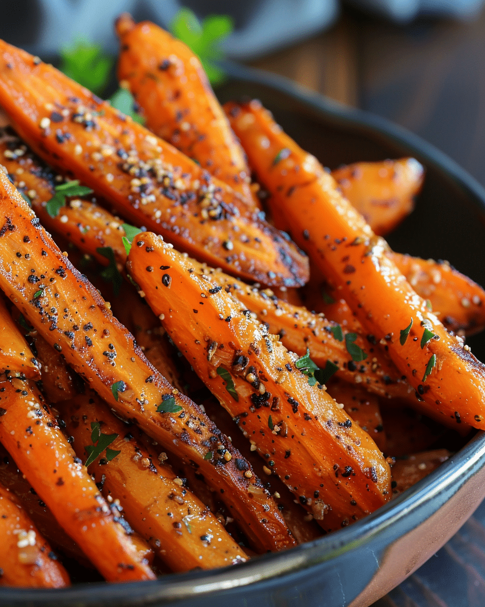 I store leftover carrots in an airtight container in the fridge for up to 3 days. To reheat, I place them on a baking sheet in a 350°F oven for about 10 minutes or heat them in a skillet over medium heat until warmed through. Microwaving works too, but it softens the texture more than I prefer.
