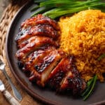 Honey BBQ Chicken Rice is a hearty, sweet-and-savory dish that brings together tender chicken coated in sticky honey barbecue sauce, served over a bed of fluffy rice with vegetables. It’s bold, comforting, and perfect when I want a simple yet flavor-packed meal that feels both homemade and satisfying.