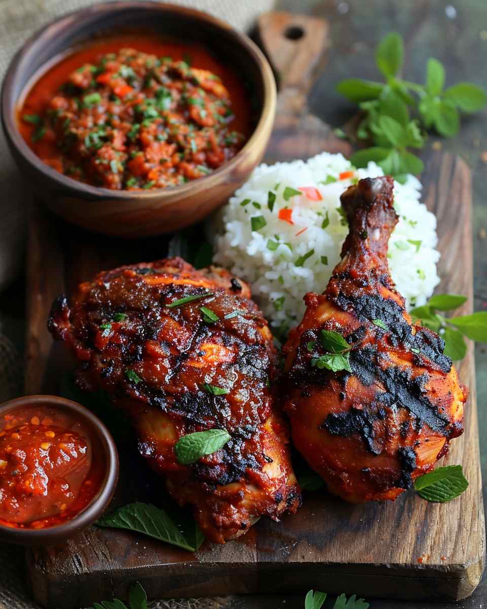 A bold and flavorful Indonesian grilled sambal chicken featuring a spicy, tangy marinade and smoky char for a vibrant and satisfying dish.