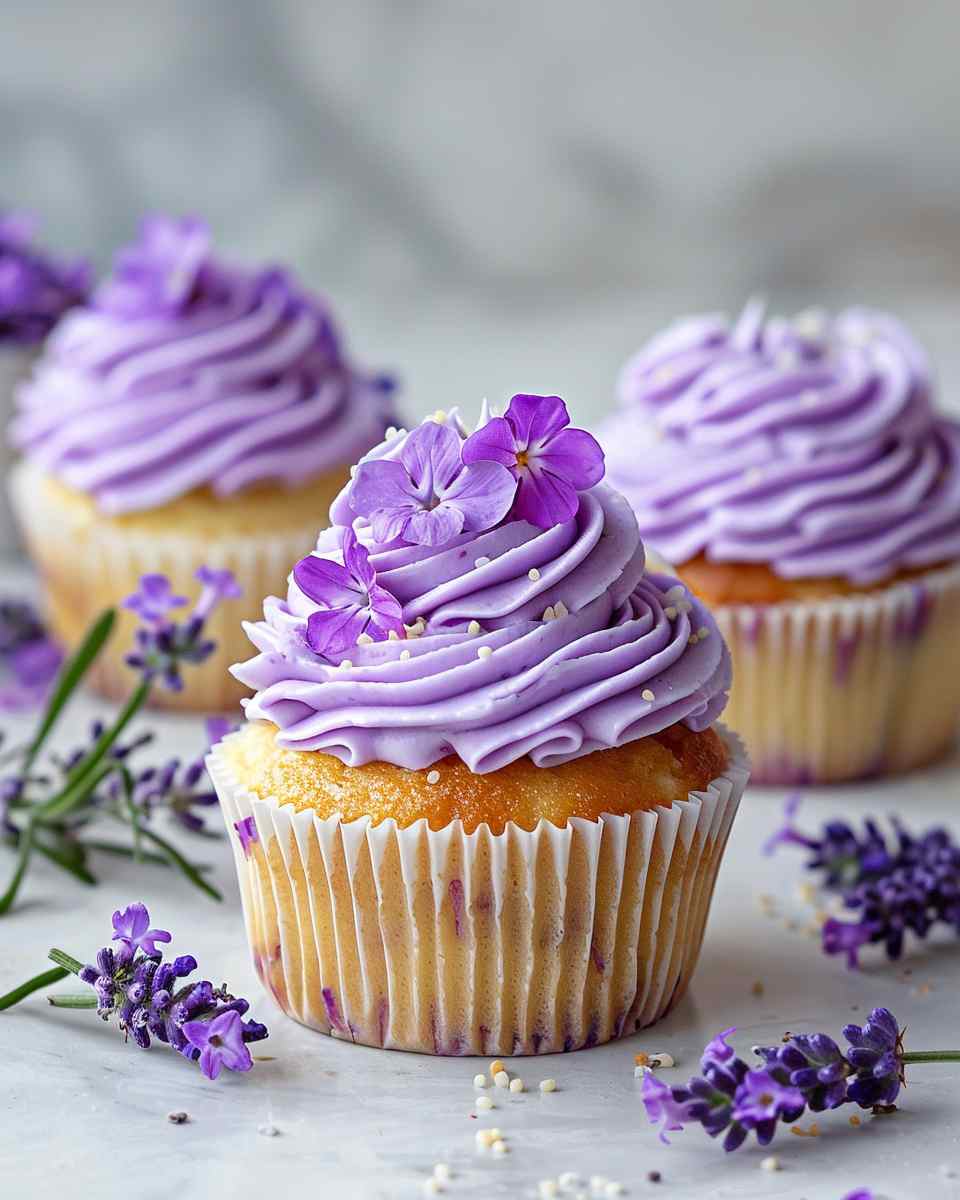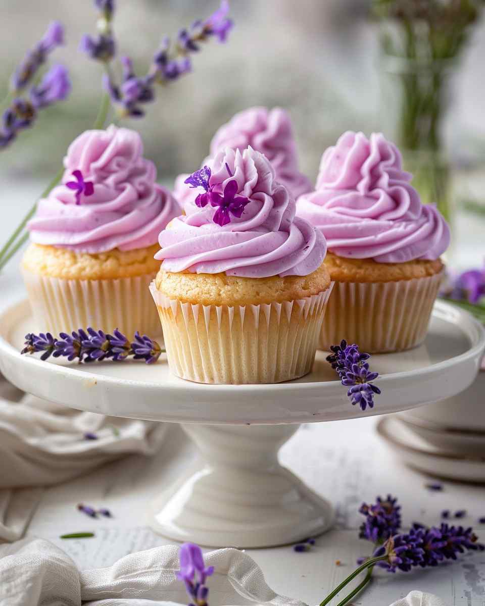 Soft and fluffy cupcakes infused with delicate lavender and naturally sweetened with honey, creating a fragrant and comforting dessert.