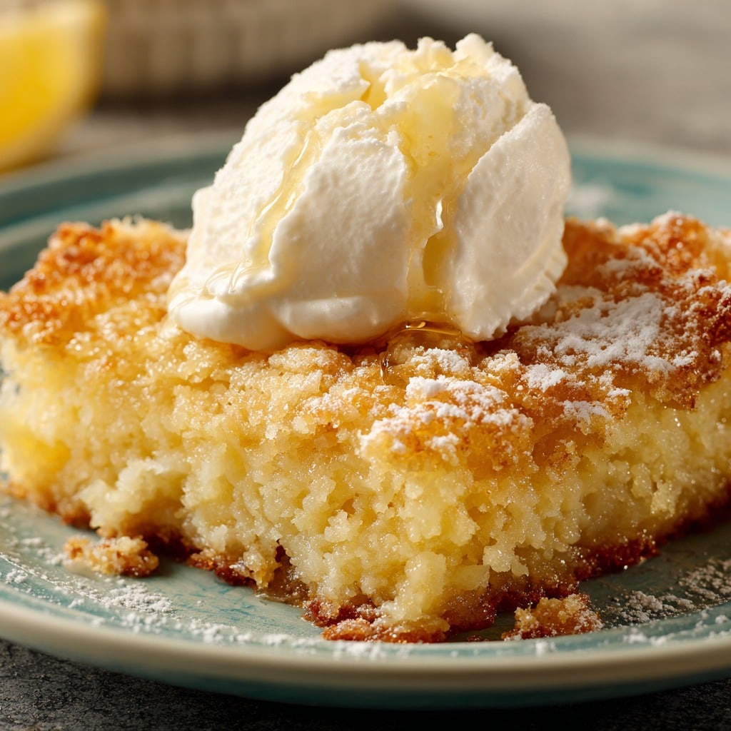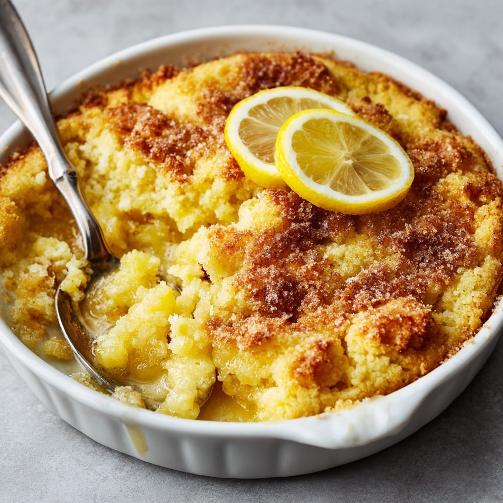 A bright and tangy lemon dessert made with simple layered ingredients, creating a soft, gooey base with a crisp buttery topping and minimal effort.