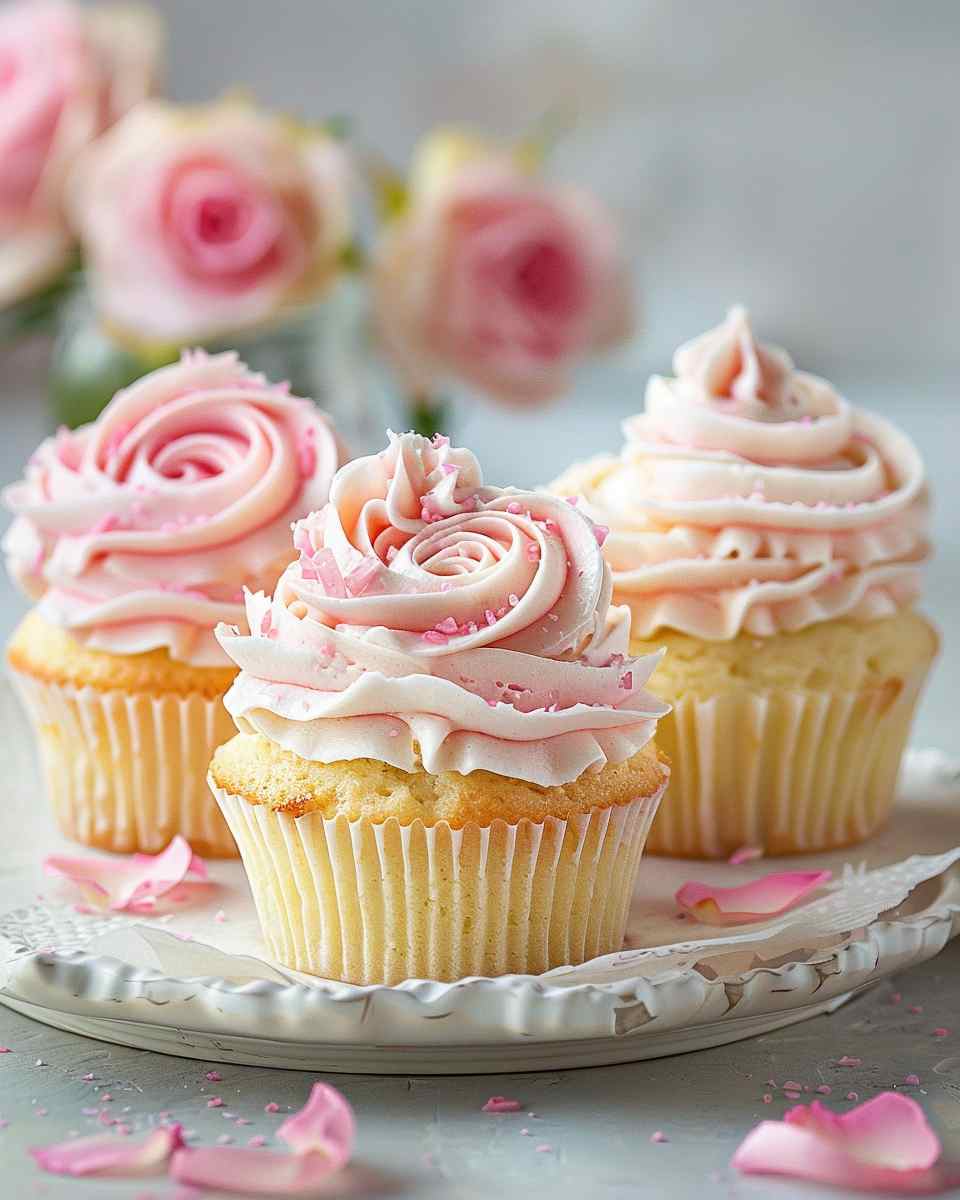 Delicate and elegant cupcakes infused with rosewater, featuring a soft, fluffy texture and a lightly floral aroma for a truly special treat.
