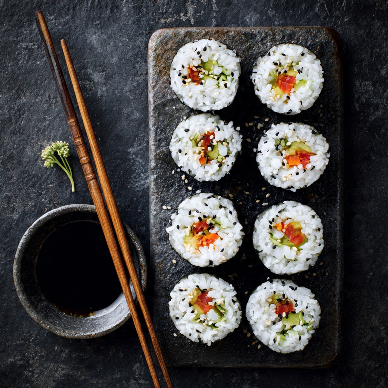A fun and customizable maki sushi recipe featuring seasoned rice, crisp vegetables, and optional fillings rolled in nori for fresh, bite-sized pieces.
