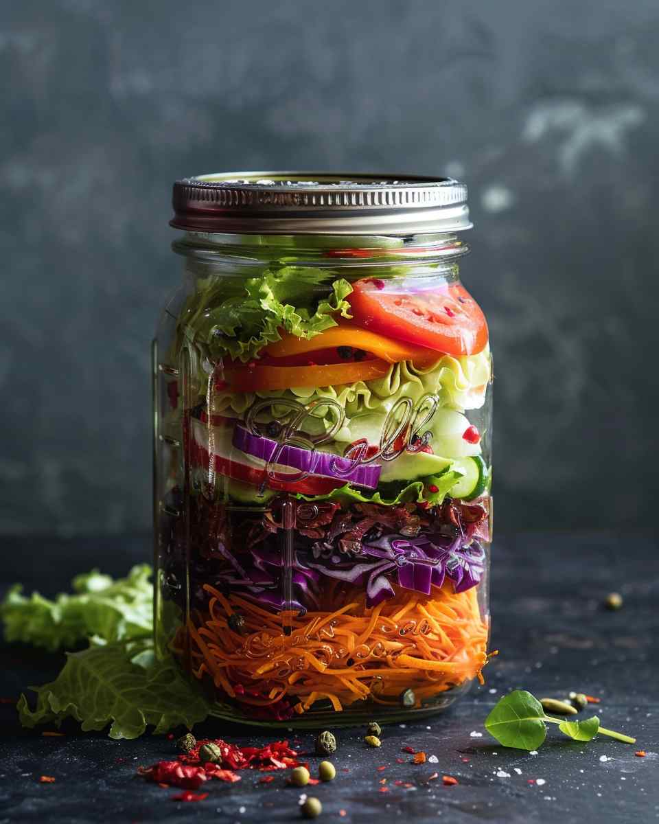 A fresh and convenient layered mason jar salad that stays crisp and flavorful, perfect for meal prep and on-the-go meals.