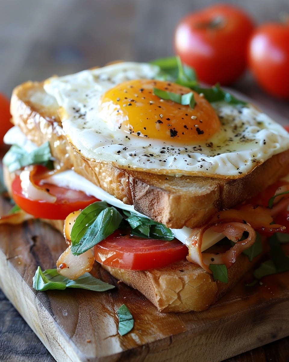 I prefer eating this sandwich fresh, but if I have leftovers, I store the components separately in the refrigerator for up to 1 day. When reheating, I warm the eggs and bread slightly before assembling again to keep everything tasting fresh.