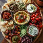 Sometimes I add salami, or spiced lamb skewers if I want to include meat. For a vegan version, I skip the dairy and focus on hummus, tabbouleh, marinated chickpeas, and veggie-packed spreads. I also love making it seasonal — grilled zucchini and eggplant in summer, roasted carrots or beets in fall.