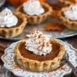 These Mini Pumpkin Pies are the perfect handheld fall dessert—featuring a flaky crust, creamy pumpkin filling, and cozy spices. Easy to bake, serve, and freeze, they’re a festive favorite for holidays and gatherings.