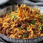 I’ve made it meatless by swapping in plant-based ground “beef” or crumbled tofu—it still tastes great with the same sauce and noodles.