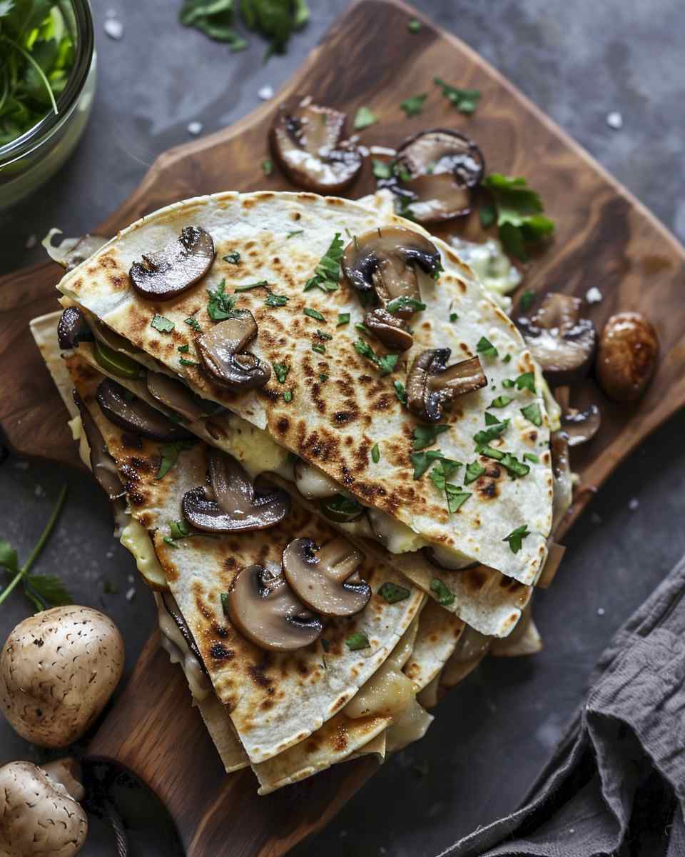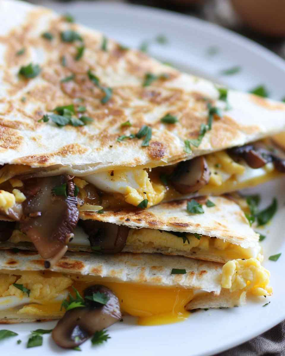 A quick and savory mushroom egg quesadilla filled with sautéed mushrooms, fluffy eggs, and melted cheese in a crispy tortilla.