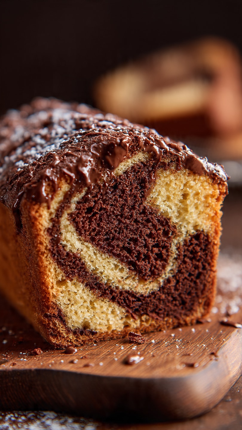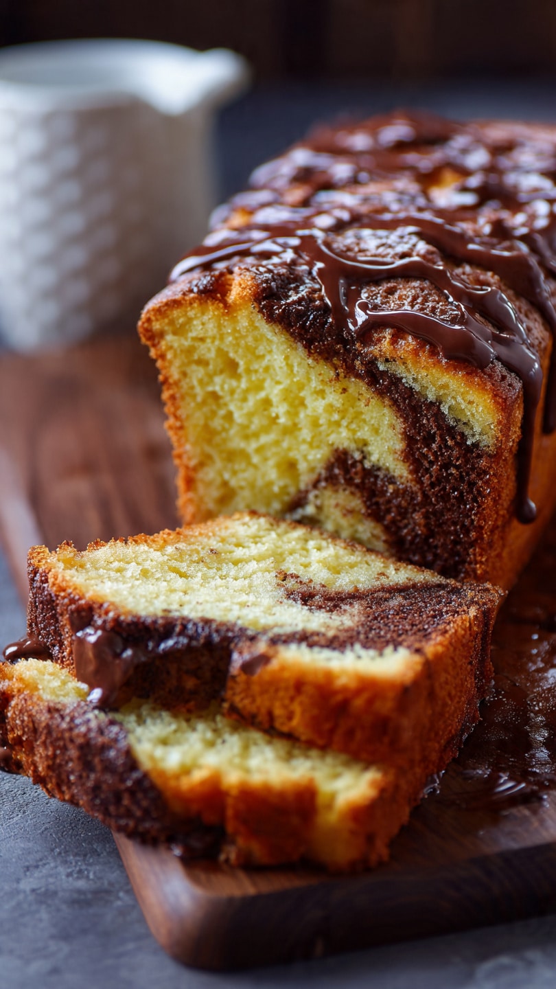 A rich, buttery pound cake with beautiful swirls of Nutella throughout, creating a moist, tender crumb with chocolate-hazelnut flavor in every slice.