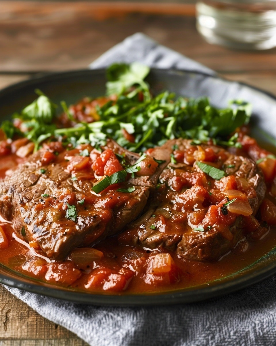 I love how this recipe transforms a humble cut of beef into something incredibly tender and flavorful. It’s budget-friendly, simple to prepare, and perfect for Sunday dinners or chilly evenings. The slow simmering breaks down the meat beautifully, and the savory tomato gravy is ideal over mashed potatoes or rice.