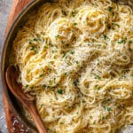 I love how this recipe delivers maximum comfort with minimal effort. The starchy pasta water blends with butter and parmesan to create a silky, rich sauce that clings to every strand. It’s a no-fuss dish that’s deeply satisfying on its own or works as a base for add-ins like chicken, veggies, or shrimp. And since it’s all made in one pan, cleanup is a breeze.