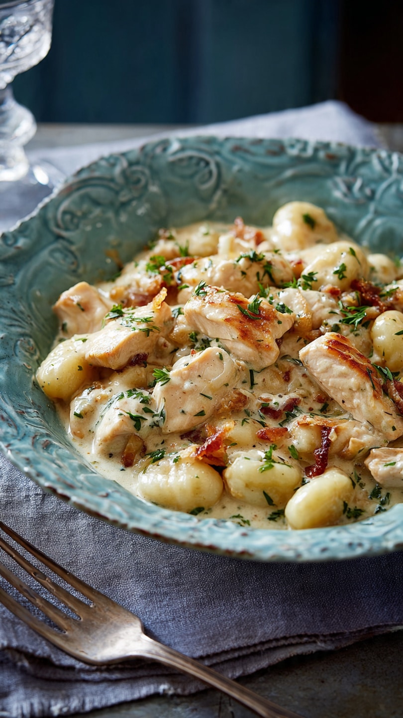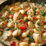 A rich and comforting one-pan creamy chicken and gnocchi dish where tender chicken, pillowy gnocchi, and spinach are coated in a silky Parmesan cream sauce for an easy, satisfying meal.