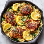 I enjoy making this one skillet lemon butter chicken and orzo because it’s simple, flavorful, and comforting. It’s one of those meals I like to prepare when I want something satisfying with minimal effort and cleanup.