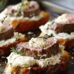 - Beef tenderloin (about 1 lb for 12–16 crostini)