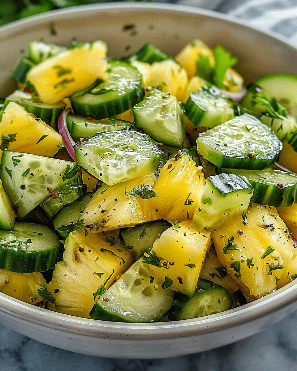 Pineapple Cucumber Salad is the kind of dish I turn to when I want something easy, healthy, and full of flavor. It’s light, vibrant, and endlessly versatile—perfect for summer gatherings or simply brightening up my lunch or dinner. Once I make it, it’s hard not to come back for seconds.