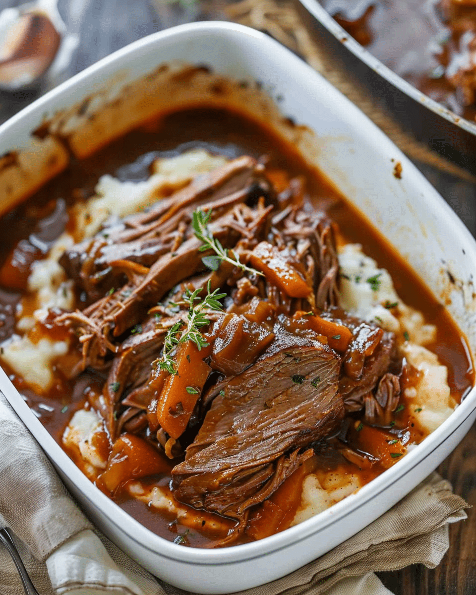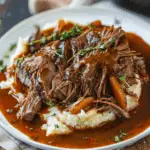 This Pot Roast Recipe is a classic, slow‑braised dish featuring a well‑marbled chunk of beef roasted until melt‑in‑your‑mouth tender and surrounded by carrots, potatoes, onions, and a rich herb‑infused gravy.