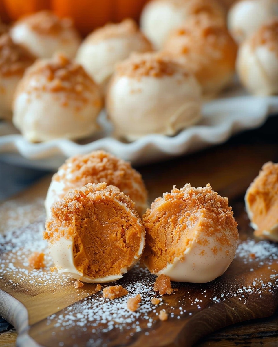 Pumpkin cheesecake truffles are rich, creamy bites of fall-flavored goodness wrapped in a smooth chocolate shell. They blend pumpkin, cream cheese, and warm spices into a luscious filling that melts in your mouth.
