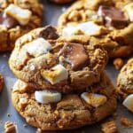 Pumpkin S’mores Cookies combine the cozy warmth of pumpkin spice with the nostalgic flavors of campfire s’mores. Soft and chewy pumpkin cookies are filled with gooey marshmallows, melted chocolate, and crunchy graham cracker bits, making them the ultimate fall dessert. Quick to make in under 30 minutes, these cookies are perfect for holiday baking, parties, or cozy nights at home.