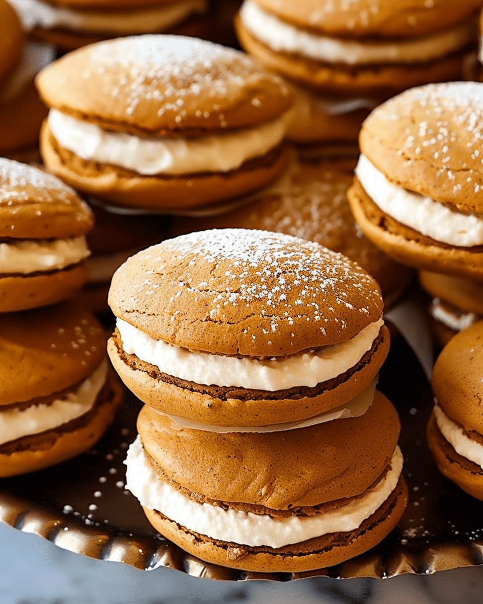 Pumpkin Whoopie Pies are soft, cake-like cookie sandwiches filled with sweet, creamy frosting that taste like the very essence of fall. I bake fluffy spiced pumpkin rounds and sandwich them with a luscious cream cheese or marshmallow filling, creating the perfect handheld treat. They’re cozy, nostalgic, and full of warm spices—and they always disappear fast.