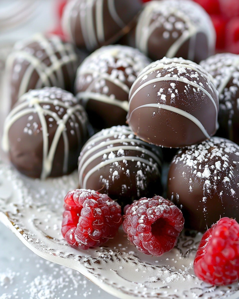 Use white chocolate for a sweeter version.,Add 1–2 tsp raspberry liqueur for a more intense berry flavor.,Let truffles sit at room temp for 10 minutes before serving for the best texture.,To dip in melted chocolate, freeze the rolled truffles for 10 minutes first.