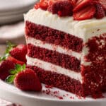 I love this cake because it’s both elegant and easy to make. The red velvet layers are rich and velvety, while the strawberries add a fresh, juicy contrast that keeps each bite balanced. It looks impressive on the table, but it comes together with simple steps and everyday ingredients. Whether I’m making it for Valentine’s Day, a birthday, or just a weekend treat, it always turns out beautifully.